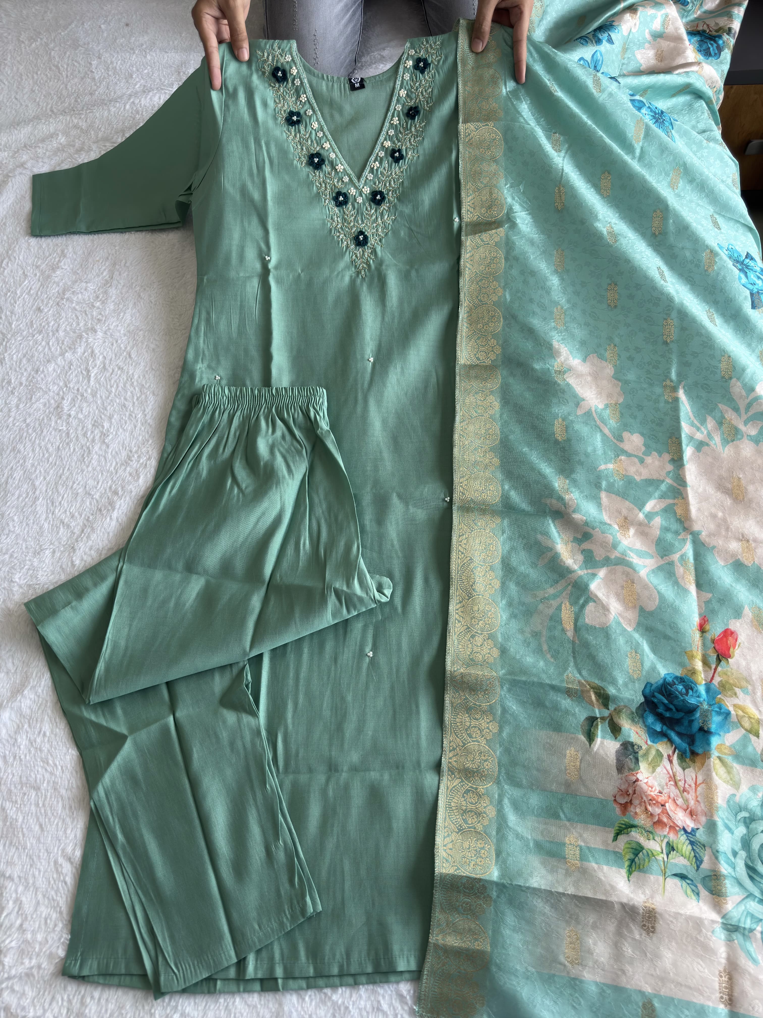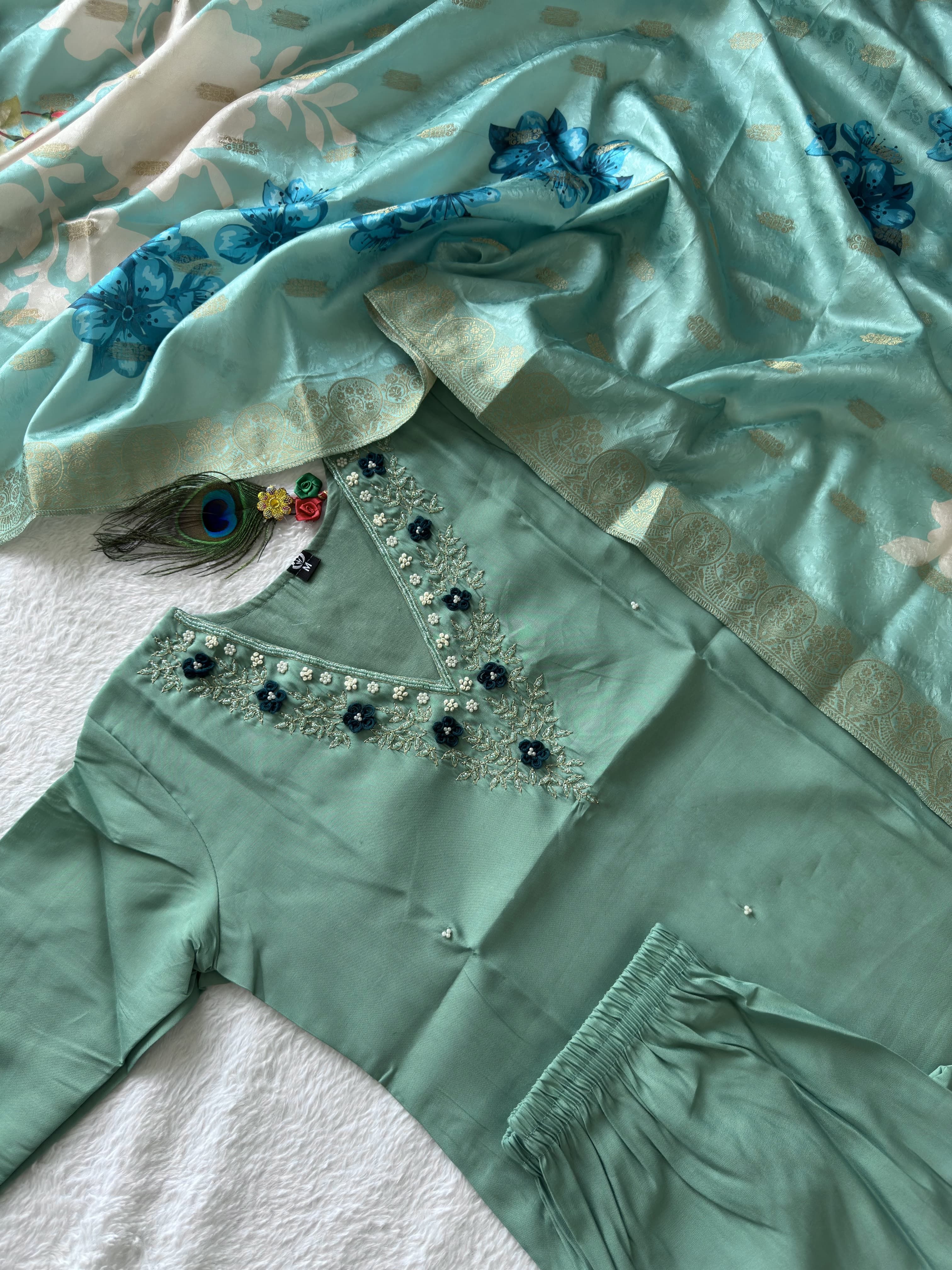 *✨DUPATTA* : Hevay Lichi Silk Jecard (2.30 Mtr) *✨WORK* : Beautiful Hand Work