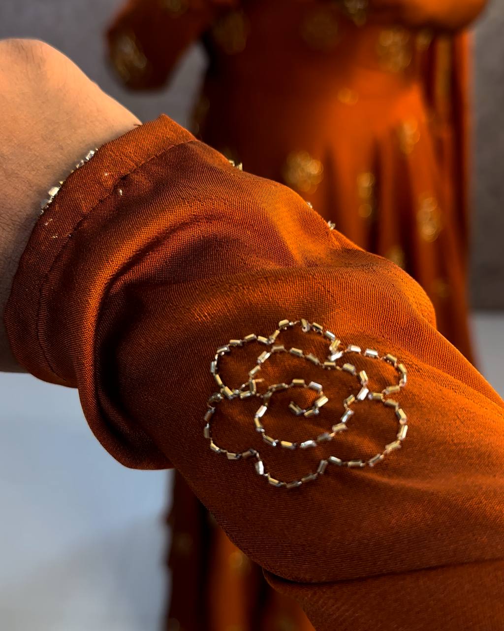 *Fabric* : premium rangoli silk with beautiful flower 🌼 beads work
